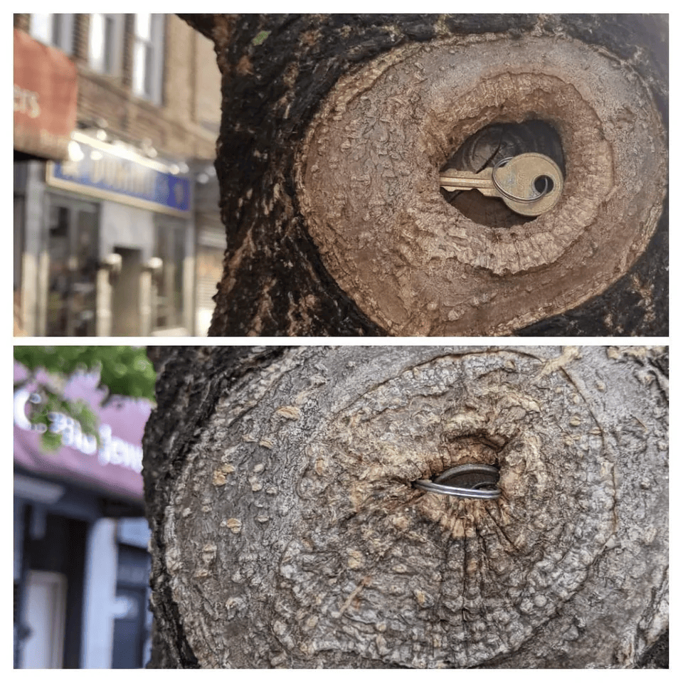 Разница между фото 10 месяцев. Дерево чуть не проглотило ключ