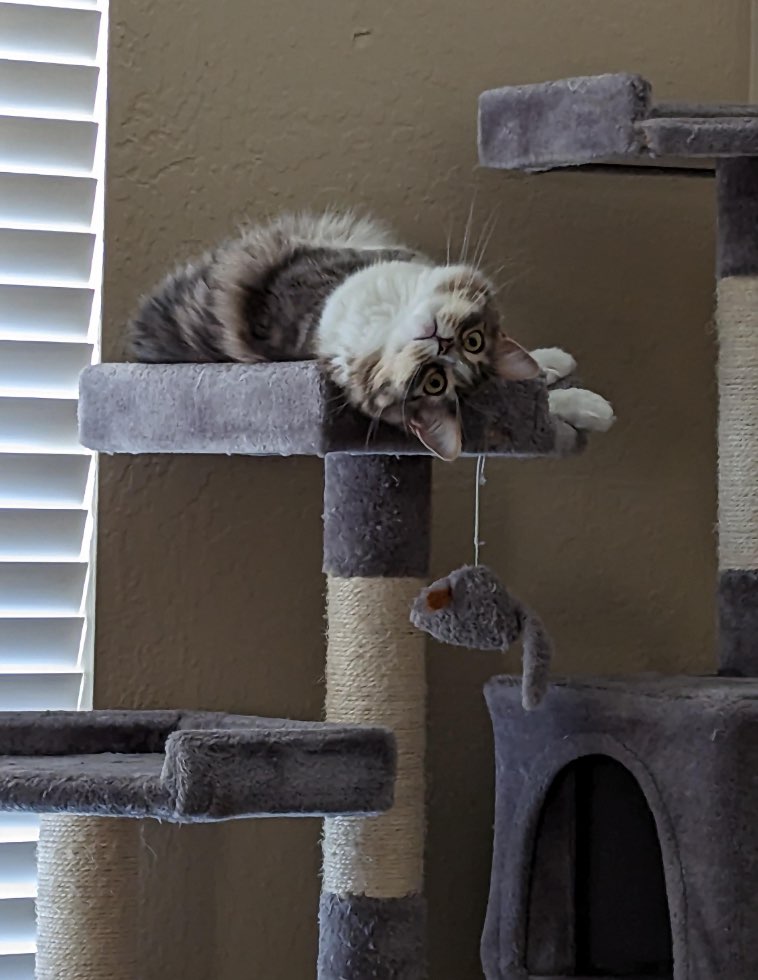 “Мой котик просто отдыхает на первом этаже своей двухъярусной кроватки, но выглядит при этом очень смешно”