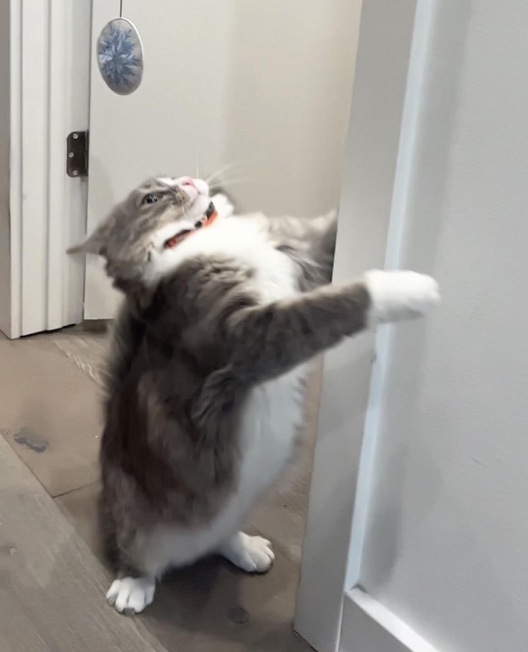 “Судя по удивленному выражению его мордашки, котик до этого момента сам не знал, что его лапки могут так изгибаться”