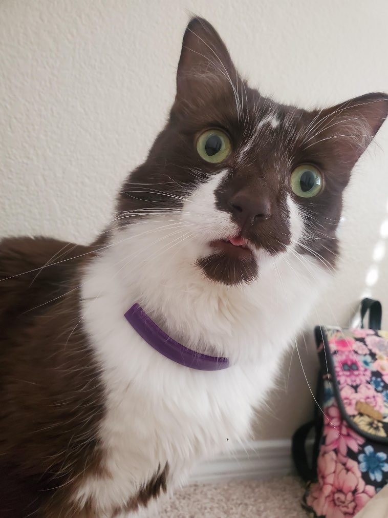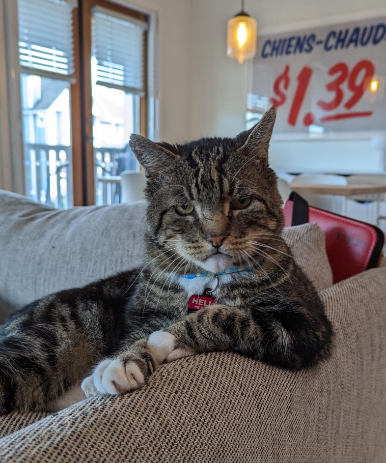 6. “По иронии судьбы этого вечно угрюмого кота мы назвали Цветочком. В свое время наша семья забрала его с улицы и, несмотря на внешний вид, мы надеемся, что ему у нас живется хорошо.”