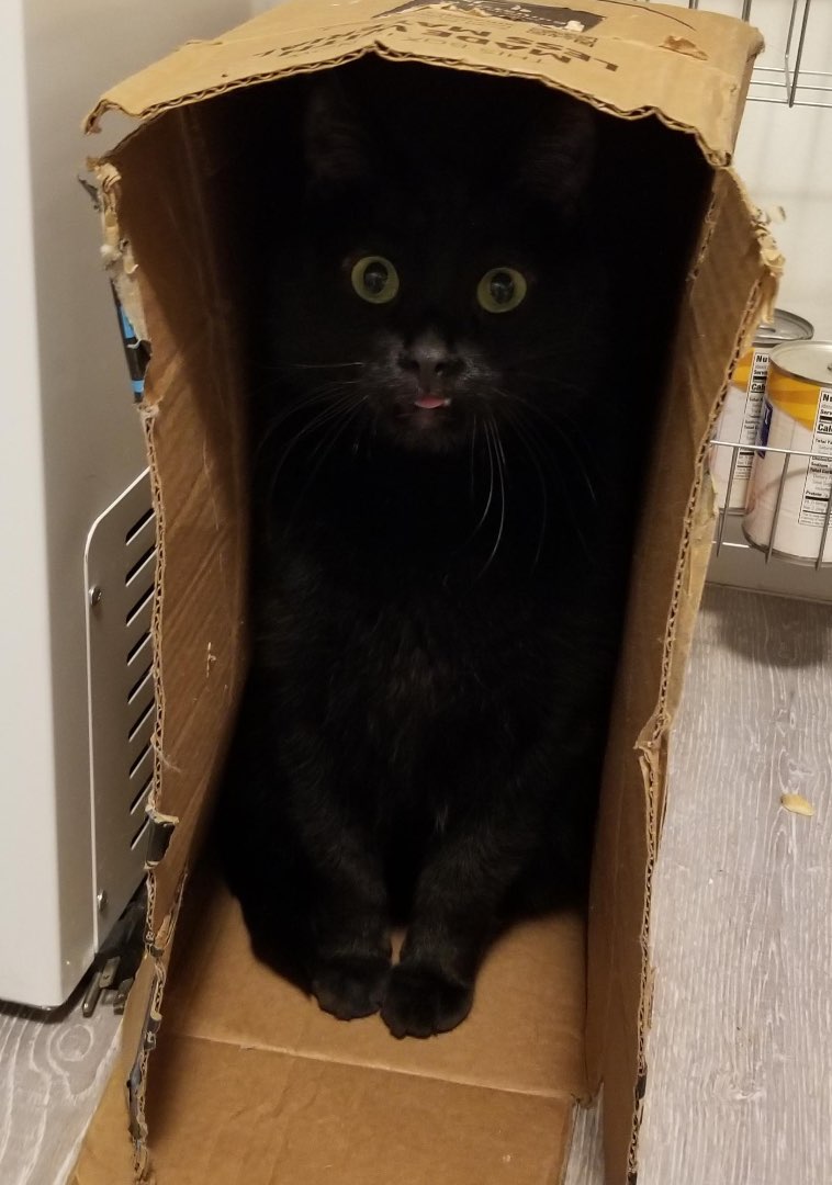 16. Судя по выражению его мордочки, котик не ожидал, что коробка так идеально подойдет под его параметры
