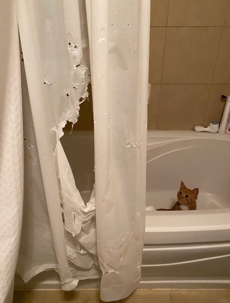 9. “Похоже, кошка решила тонко намекнуть мне, что эти шторы не слишком хорошо сочетаются с остальным интерьером”