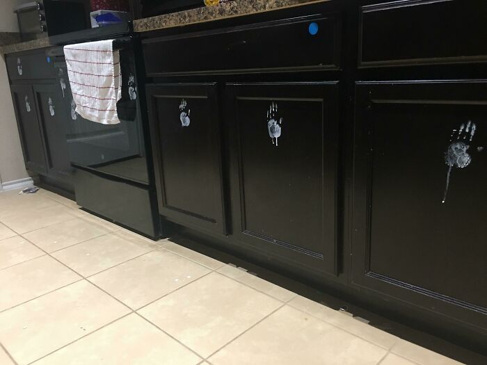 Пользователи отметили, что у ребёнка есть вкус, так как он оставил по одному отпечатку своей ладони посередине каждой дверцы. Также они писали, что чёрные кухонные панели — это очень плохое решение, потому что на них оседает абсолютно всё, а если они ещё и глянцевые, то это вообще адское зло ????????