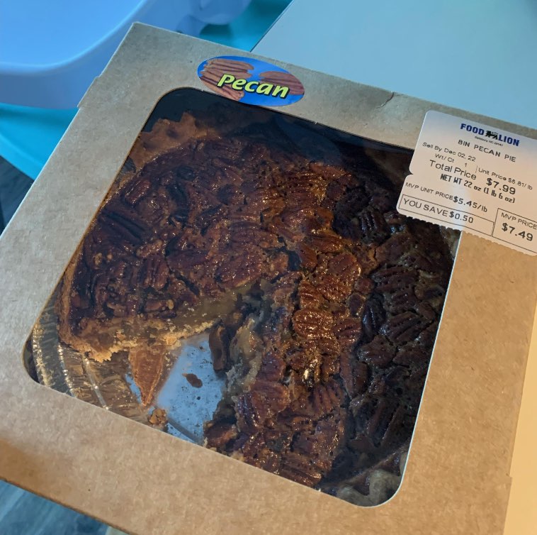 “С праздничного стола у меня остались кое-какие продукты и не тронутый пирог. Я сложила это все в пакет, завязала его узлом и взяла с собой на работу. Вот в каком виде я нашла свой пирог в холодильнике, когда пришла в комнату отдыха на ланч.”