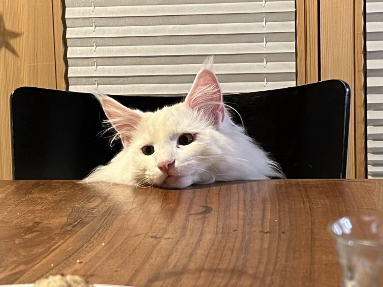 11. “Кошка наблюдает за нашей трапезой, делая вид, что она изнемогает от голода”