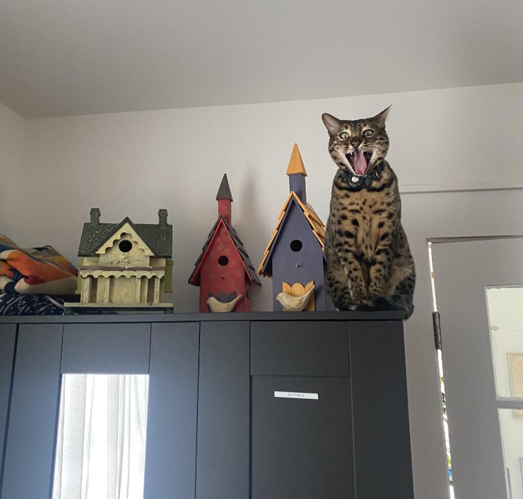 15. Кажется, этот котик решил притвориться скворечником, чтобы птички сами залетали ему прямо в рот