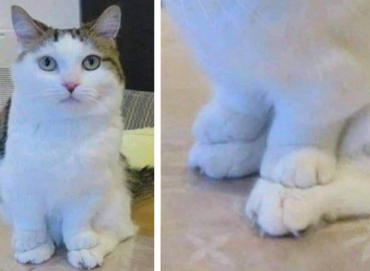 4. Котик решил спрятать подушечки лапок и придумал вот такую милую позу