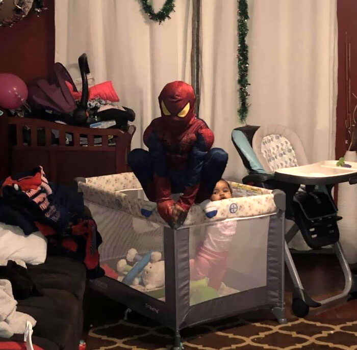 «Я попросила своего 5-летнего сына присмотреть за его сестрой, пока я была занята на кухне. Затем я выглянула и увидела это. Его сестра в хороших руках»