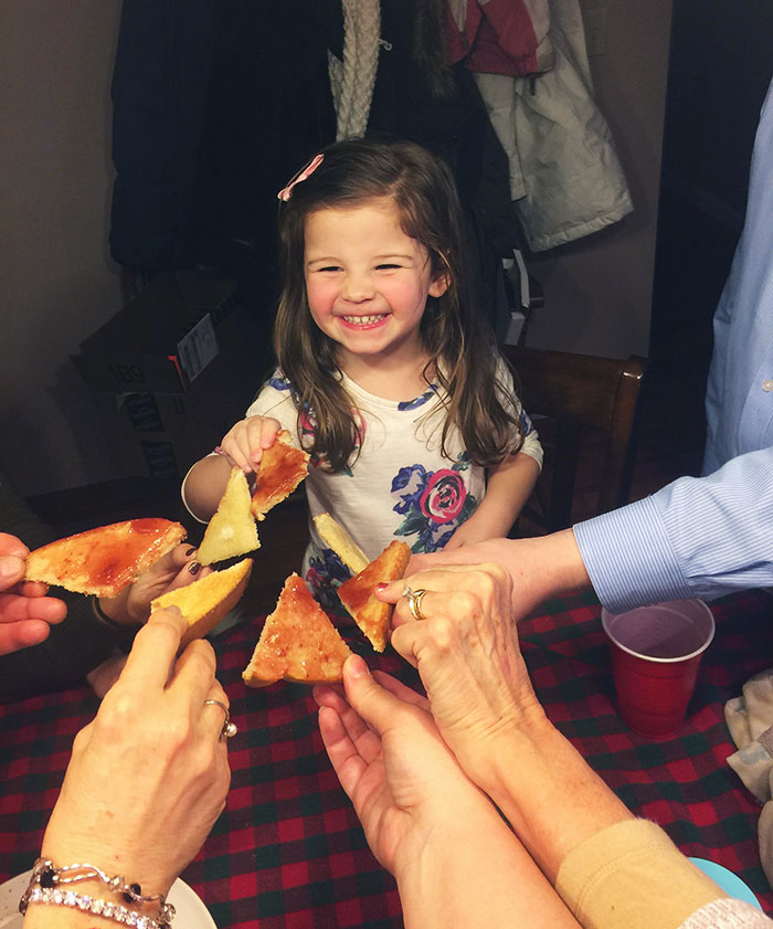 «Мы сказали нашей 3-летней дочке, что Новый год особенный, потому что можно поднять тост. Через несколько часов она сказала: „Мы сейчас будем делать тосты?“ Так родилась наша новогодняя традиция»