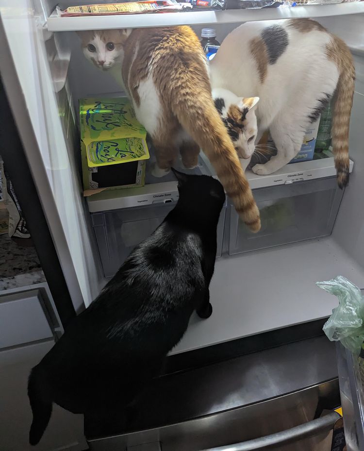 Что происходит, когда вы открываете холодильник в доме с тремя кошками