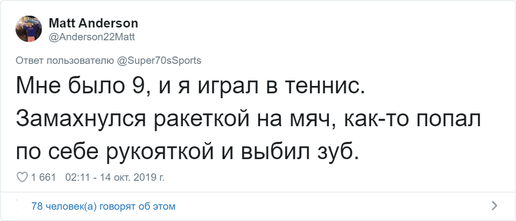 Некоторые истории нельзя рассказать без здорового смеха — именно такими случаями предложил поделится пользователь Твиттера под ником Super70sSports. Он воодушевил своих подписчиков рассказать о самых глупых травмах, которые они когда либо получали.