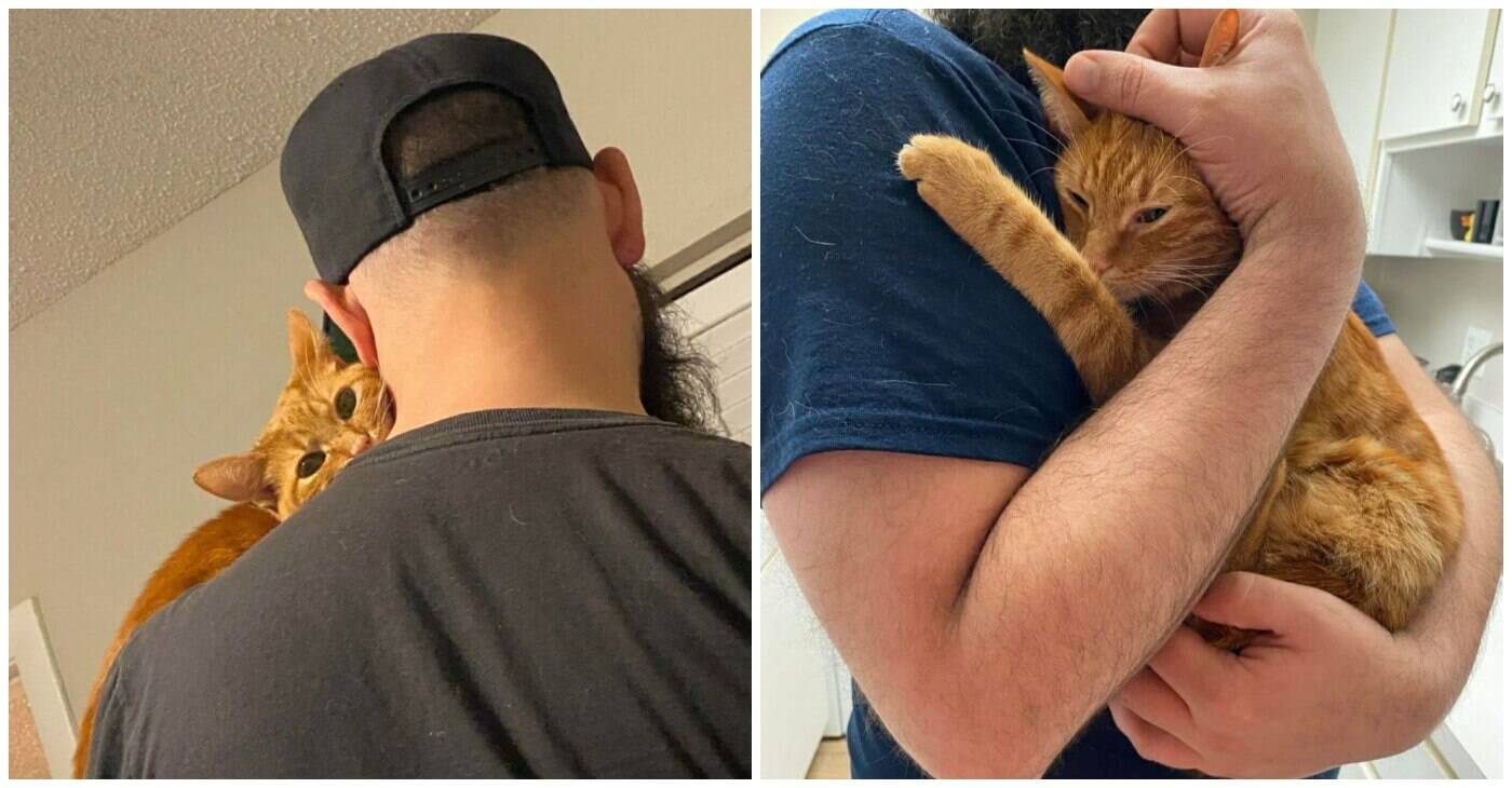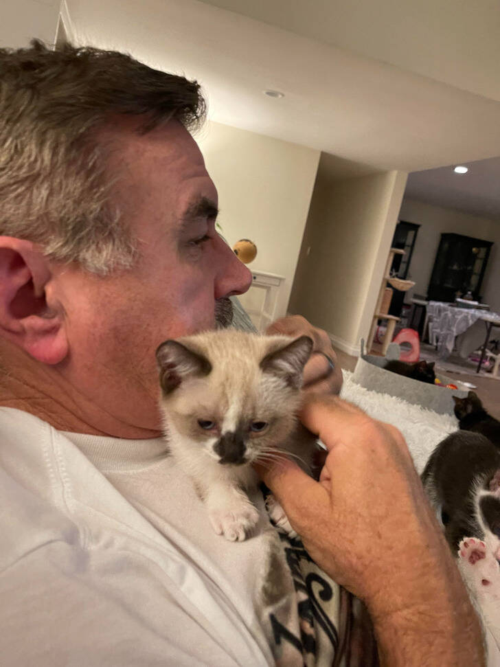 5. «Когда я его спросила, могу ли принести домой котенка из приюта, где я была волонтером, он ответил: «Ни в коем случае». На фото мой муж и наш 25-й приемный котенок»