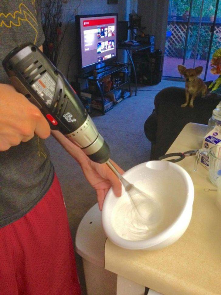 13. Попросила мужа хорошенько взбить крем, услышала странный шум…