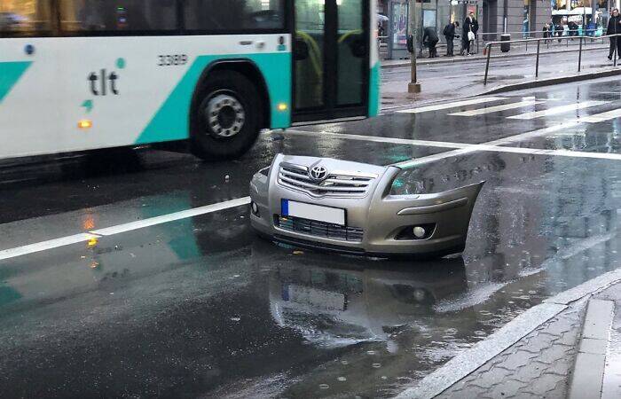 7. Фото автомобильного бампера. Кажется, будто остальная часть автомобиля невидима
