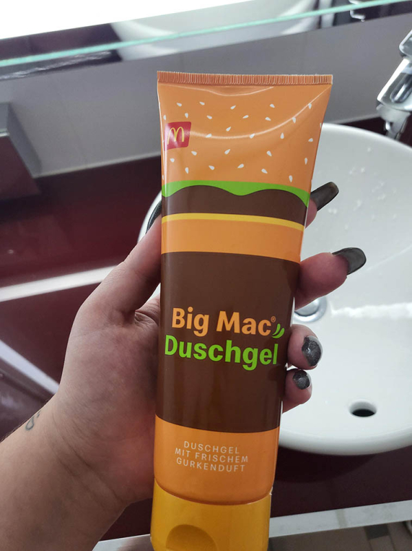 11. “Гель для душа Биг Мак, который я купил в Австрии. Пахнет не гамбургером, а свежими огурцами.”