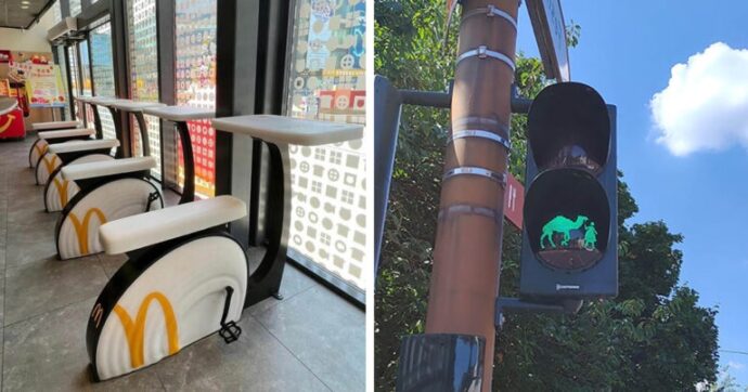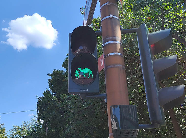 15. На этом светофоре в Германии в качестве сигнальных огней изображена маленькая девочка и верблюд