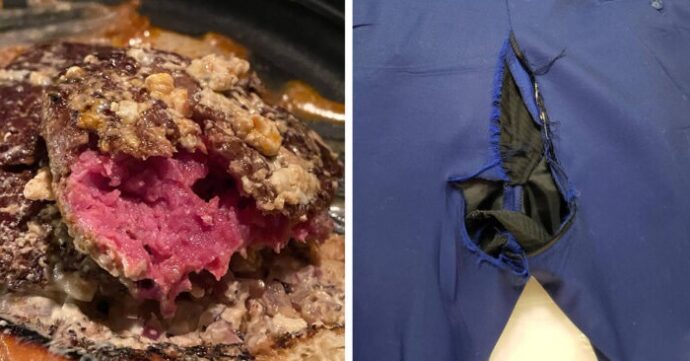 «Другу вчера вечером подали этот бургер. Официантка резко отпрянула от котлеты, когда мы ей её показали. Я не эксперт по гамбургерам, но этот кажется слишком розовым»