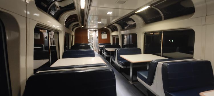 Автор фото написал, что поезд стоял без движения в течение 12 часов, и что он понятия не имеет, почему он ехал в поезде один. Случай произошёл в США, когда поезд совершал маршрут Хьюстон — Новый Орлеан. «Когда ко мне пришли проводники, то бесплатно дали мне обед, который подают только в вагонах бизнес-класса. Это было не так уж плохо, тушеная говядина», — рассказал автор, сообщив, что до Нового Орлеана ему оставалось ехать 3 часа. Благодаря ноутбуку и наличию в вагоне розеток, автор не скучал.