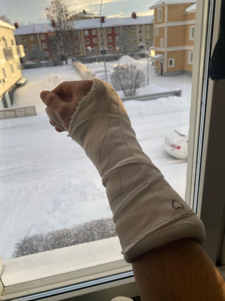 Автор фото рассказал, что он живёт в Швеции, и что он сломал руку, когда ударил другого парня по лицу.