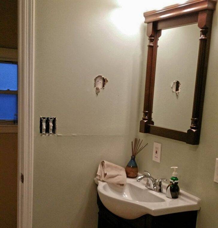 11. «После ремонта ванной комнаты я пробил дыру в стене, когда пытался установить полотенцесушитель»
