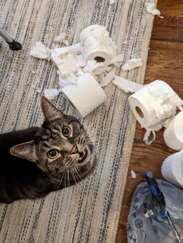 Вы только посмотрите на их невинные (хоть и наглые) мордочки. Они точно ничего не сделали. Мебель поцарапала сама себя, бельё само упало с вешалки, а горшок с цветком сам сбросился со стола. Честно-честно!