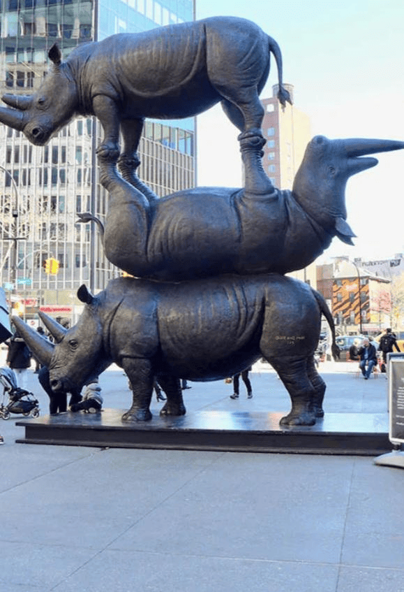 Эта скульптура была на Астор-плейс. Насколько я знаю, её там больше нет. Она была установлена, чтобы привлечь внимание к трём оставшимся в живых северным белым носорогам.
