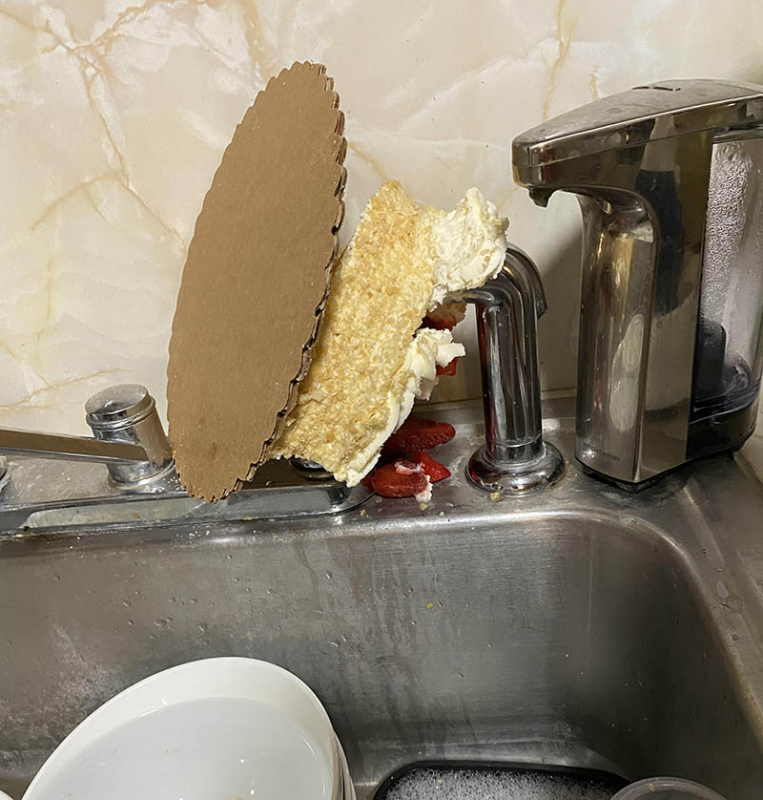 Повезло, что тортик упал не в грязную раковину – есть шанс доесть!