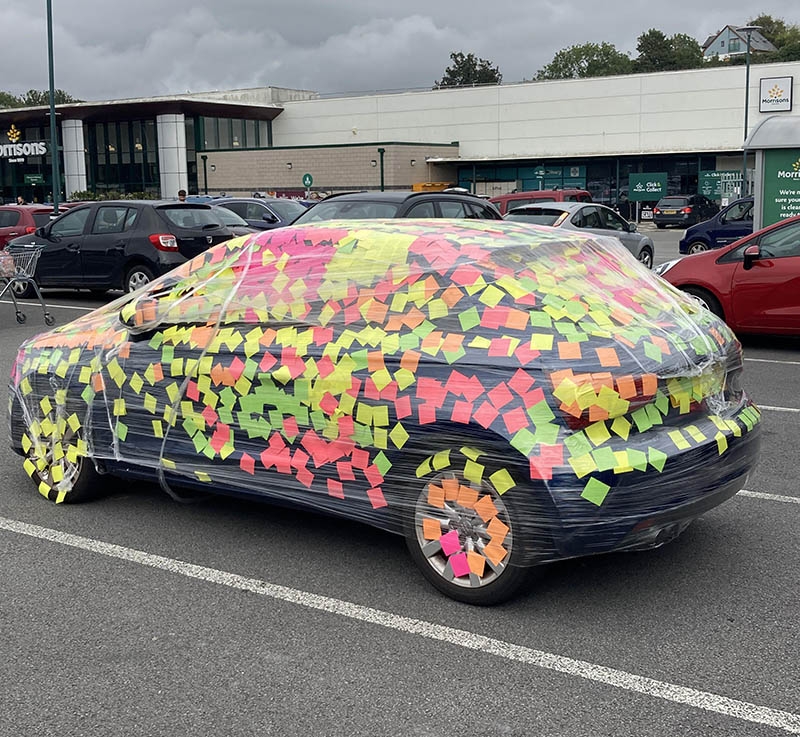 Видимо, владелец авто насолил кому-то, у кого есть фантазия и много свободного времени.
