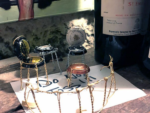 «Мы с коллегой, скучая на работе, сделали набор мебели из проволочек от шампанского»