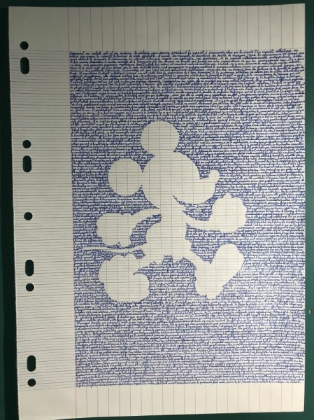 Студентка, которой было скучно на лекции, вместо конспекта срисовала рисунок с футболки парня, сидевшего перед ней