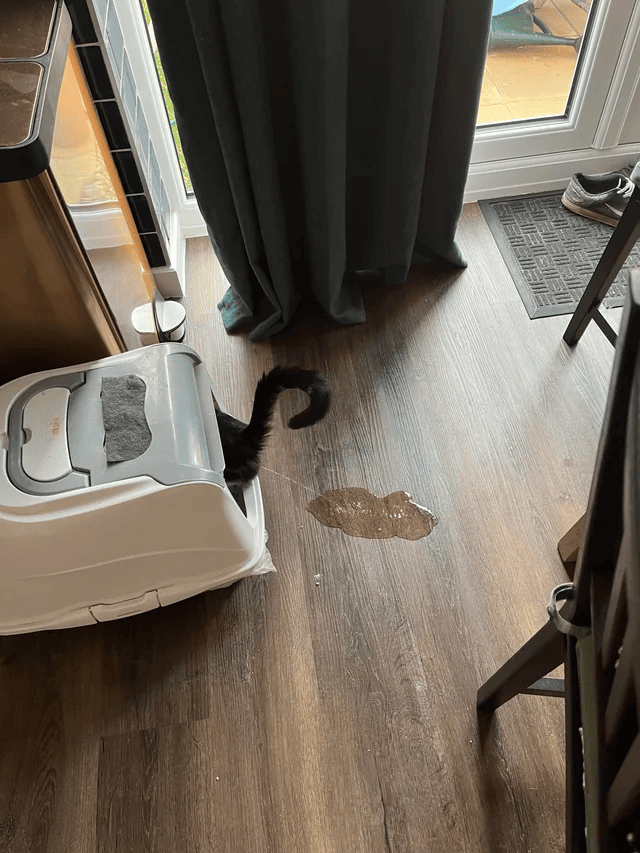 Она не хотела ехать к ветеринару и поэтому она прогрызла дыру в мебели и пряталась в ней