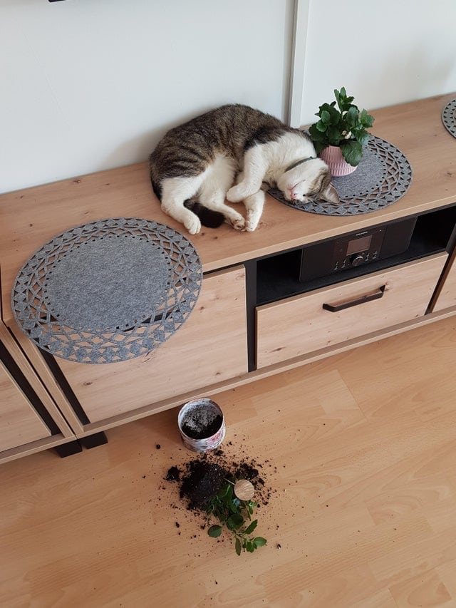 Коты и кошки бывают теми ещё прохвостами, которым никакой закон не писан. Они будут лежать там, где им захочется (плевать, что там стоял ваш любимый комнатный цветок), и есть что хотят, (плевать, что это был ваш ужин).
