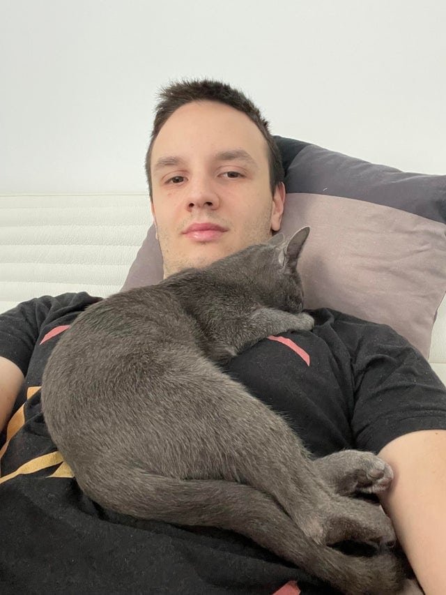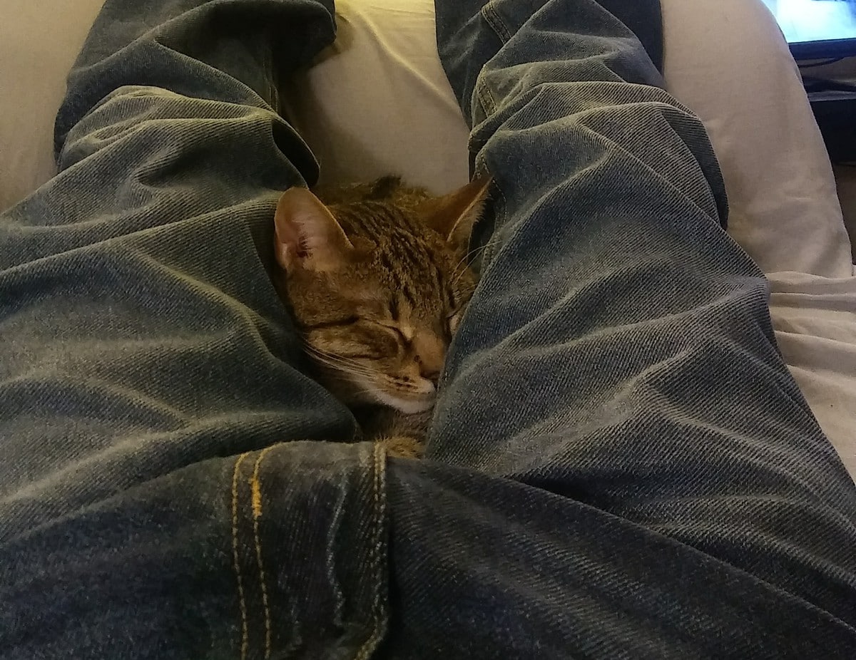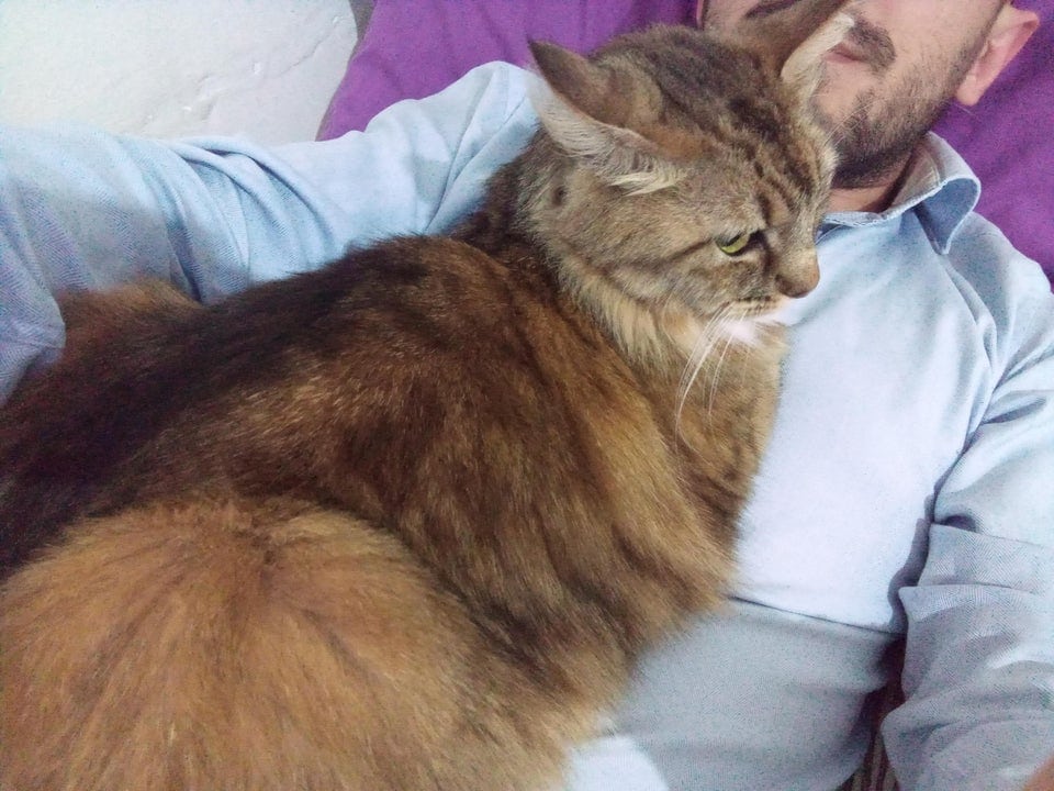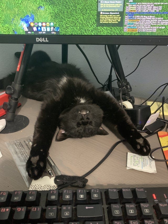 Я три раза перекладывал его на пол, но он всё равно ложился на клавиатуру