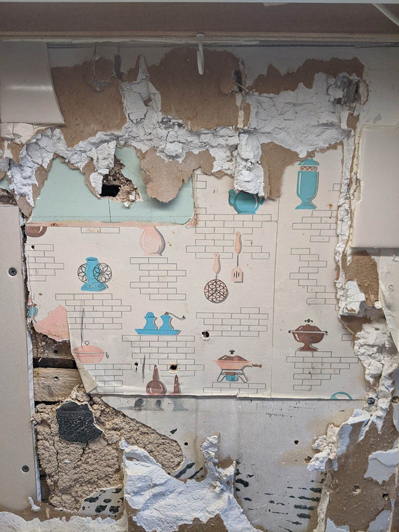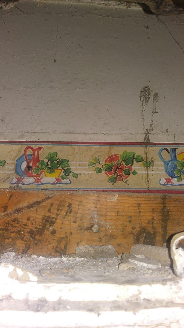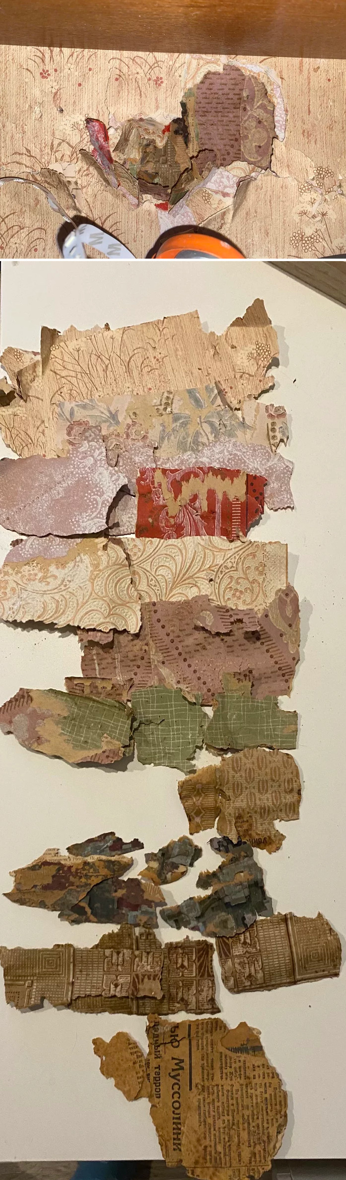 Несколько слоев обоев за шкафом. Представьте, сколько им лет!