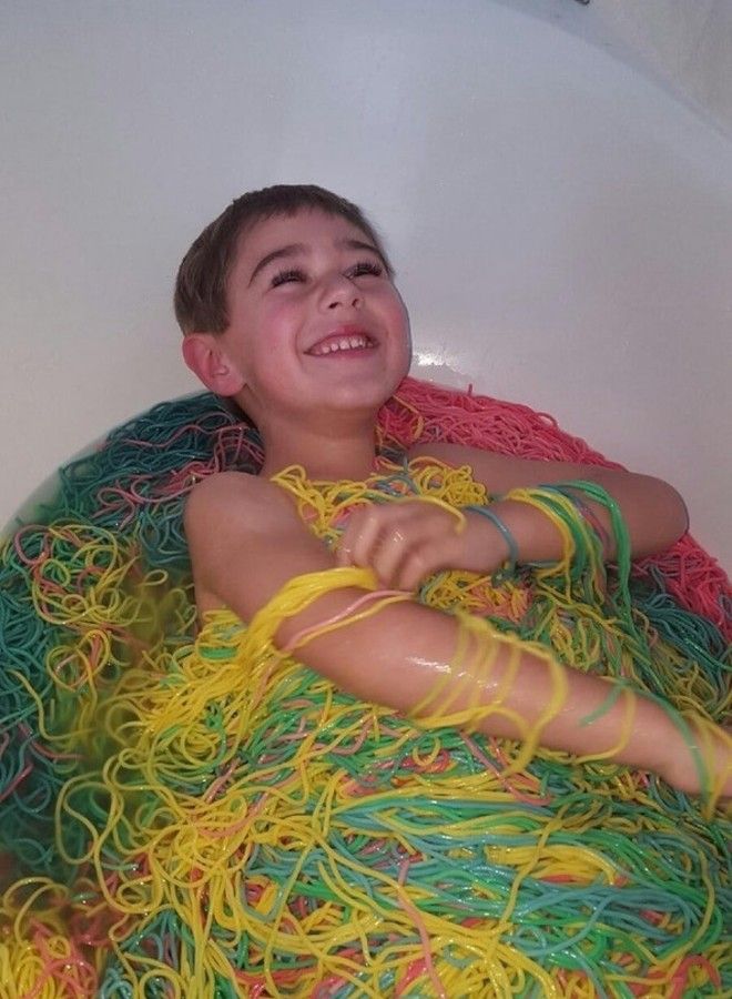 Бабушка приготовила 7 кг цветной вермишели, чтобы наполнить ею ванну для внука