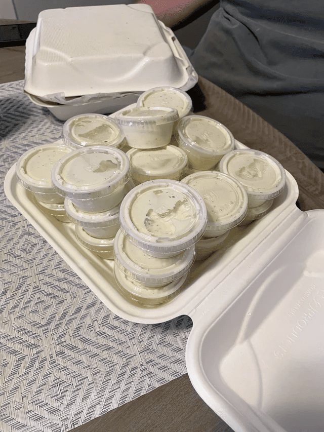 Заказал дополнительную порцию соуса. Вот как она выглядит по сравнению с обычной порцией
