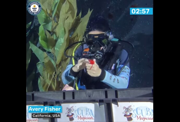 13-летняя девочка объединила свою любовь к подводному плаванию с аквалангом со страстью к магии и побила мировой рекорд Гиннесса, выполнив 38 трюков за 3 минуты, находясь под водой.