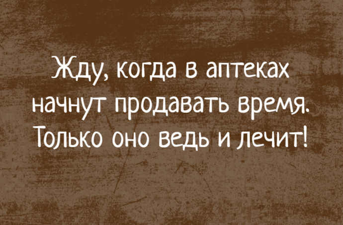 Жду, когда в аптеках начнут продавать время. Только оно ведь и лечит!