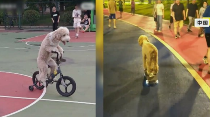 Пудель-велосипедист привлек много внимания в социальных сетях из-за своей способности садиться на велосипед и ездить на нем, используя передние ноги для управления, а задние — для вращения педалей.