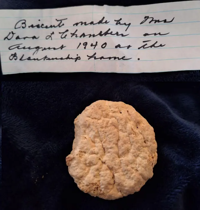 Сопроводительная записка гласила: «Печенье, приготовленное миссис Дарой Л. Чемберс в августе 1940 года в доме Бланкеншипов».