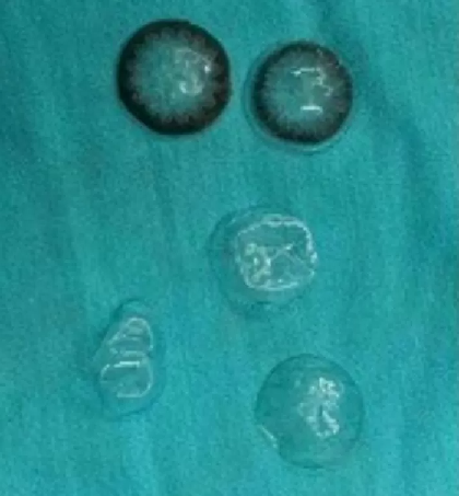 Пациентка, именуемая только г-жой А, прибыла в Больницу пластической хирургии Китайской академии медицинских наук в Пекине, чтобы пройти лечение гемифациальной атрофии с целью улучшения симметрии лица. Результаты первоначального обследования показали, что левая сторона ее лица атрофирована, а левое глазное яблоко слегка запало. После тщательного обследования лица женщины медицинская бригада решила использовать аутологичную пересадку жира, чтобы смягчить последствия ее состояния. Чего они не учли, так это того, что при пересадке жира в пустое пространство за глазным яблоком они обнаружат не одну, а пять разных контактных линз. Она сказала врачам, что за последние несколько месяцев потеряла несколько контактных линз, но никогда не думала, что они застряли у нее в глазу.