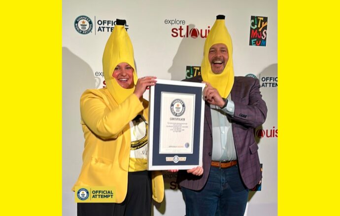 «Мы собрали группу друзей, чтобы установить сногсшибательный мировой рекорд Гиннесса по количеству людей, носящих шляпы-бананы, с участием 309 человек! Мы не смогли бы побить этот рекорд без помощи Explore St. Louis, Slalom St. Louis, Rasta Imposta Costumes и, конечно же, ВАС», — говорится в сообщении музея в социальных сетях.