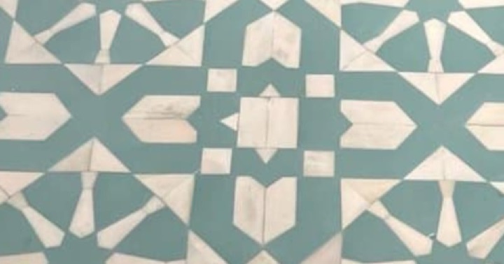 Оказалось, в самом центре узора на столе не хватает одного треугольника — зелёная плитка, из которой должна была быть составлена геометрическая композиция, попросту лишена нужного фрагмента.