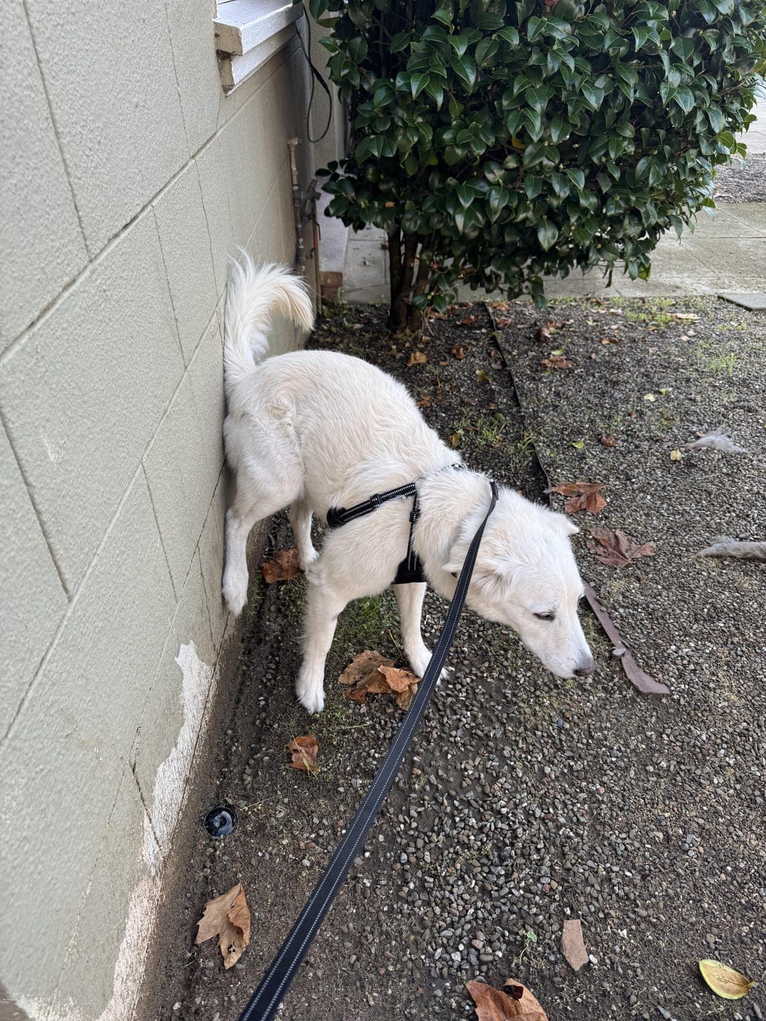 Моя собака залезла в мусор в туалете, теперь у неё есть головной убор