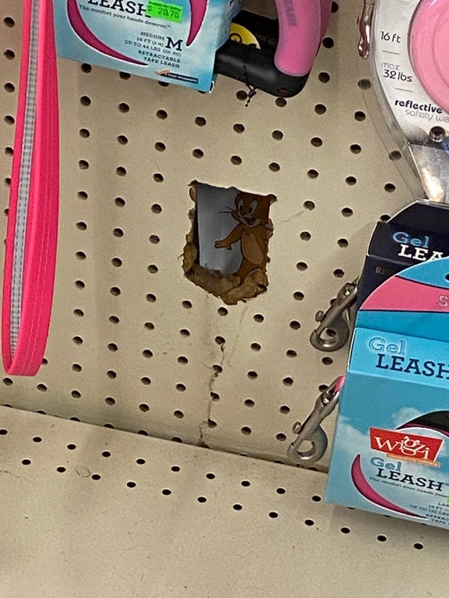 6. Дырка в стене зоомагазина, в которой можно заметить мышонка Джерри