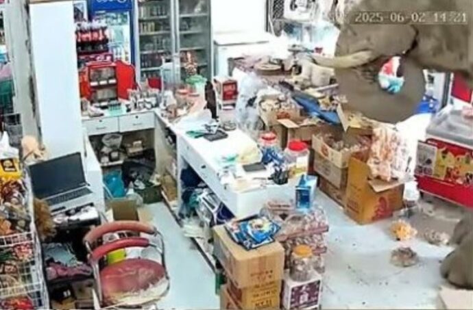Дикий слон вышел из национального парка в Таиланде, чтобы посетить продуктовый магазин, где проголодавшееся животное полакомилось яйцами и сладостями.