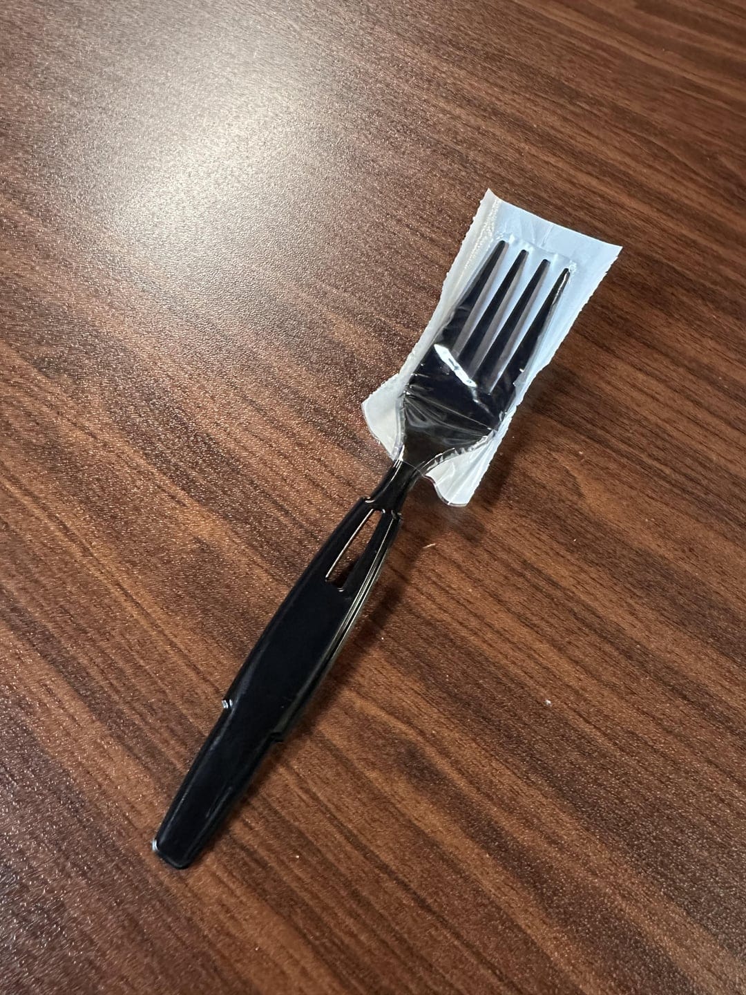Пластиковые приборы в этой такерии имеют обёртку только в самом верху, чтобы экономить пластик