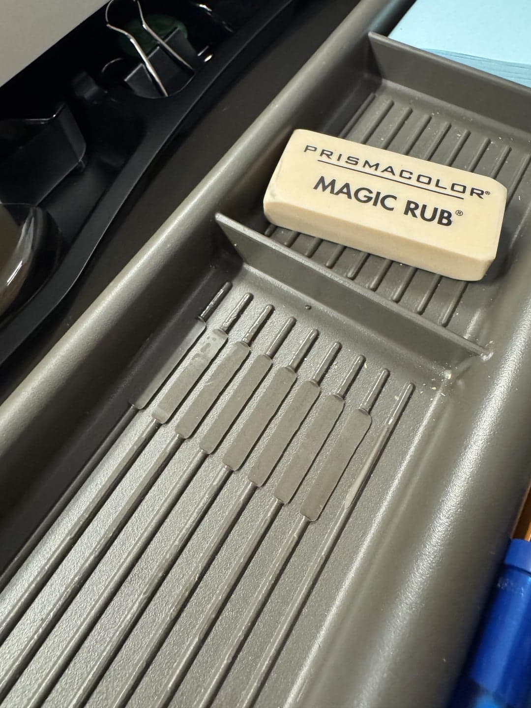 Ластик расплавил пластик в том месте, где он лежал в ящике стола