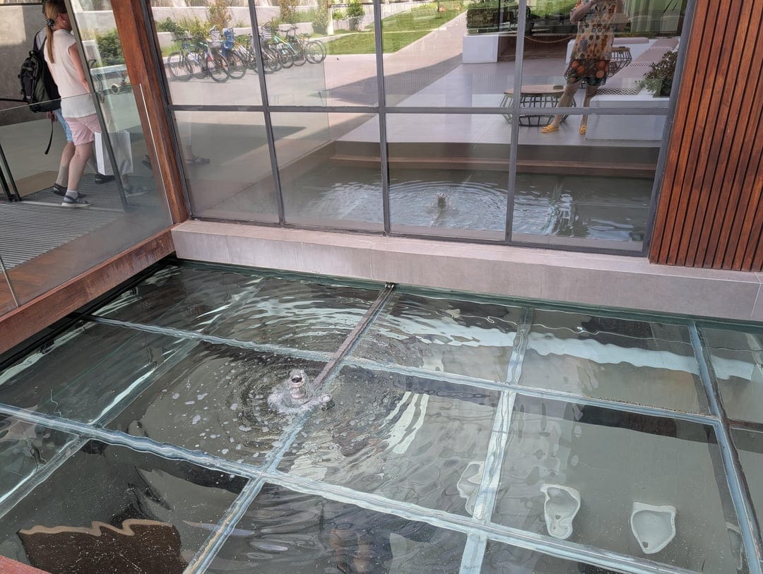 В этом отеле есть мужской туалет со стеклянным потолком, расположенным прямо под главным входом