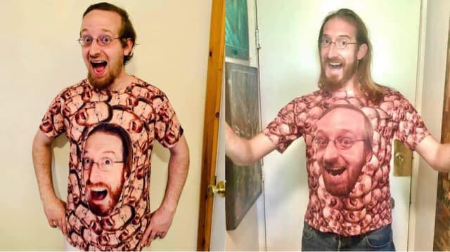 Я состою в группе со странными находками из секонд-хендов. В этой группе какая-то женщина опубликовала фото этой футболки, которую она нашла в одном из магазинов. Мой друг отметил меня на этой фотографии, потому что подумал, что мы с этим парнем похожи. В комментариях я выложил своё селфи. А потом там появился парень, чьё лицо было на футболке!